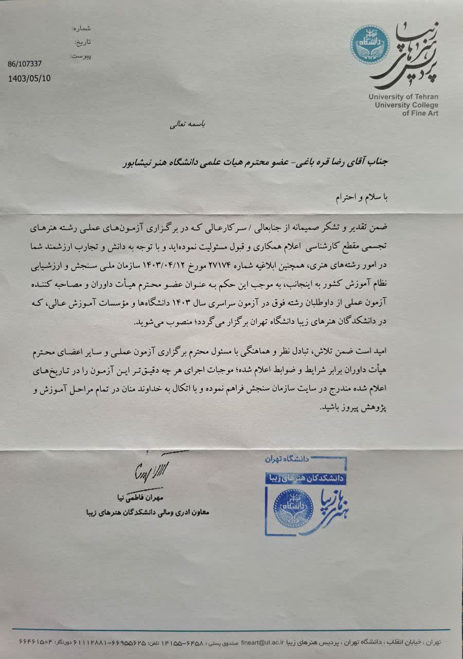 فضای زیبا و دلنشین دانشکده هنر، شرایط مناسبی برای رشد و شکوفایی استعدادهای هنری دانشجویان فراهم آورده است. دانشکده هنر ضمن ارایه آموزشهای اصیل و موثر به دانشجویان در گروههای مختلف آموزشی، در راستای سند توسعه راهبردی دانشگاه نیشابور، در صدد ارایه خدمات هنری-فرهنگی در سطح ملی می باشد. دانشکده هنر، در عین حال، در توسعه و پیشرفت علمی و فرهنگی منطقه و شکوفایی توانمندیها و استعدادهای هنری منطقه نیز ایفای نقش میکند. ریاست دانشکده هنر را در حال حاضر جناب آقای دکتر محمد درویشی برعهده دارند.